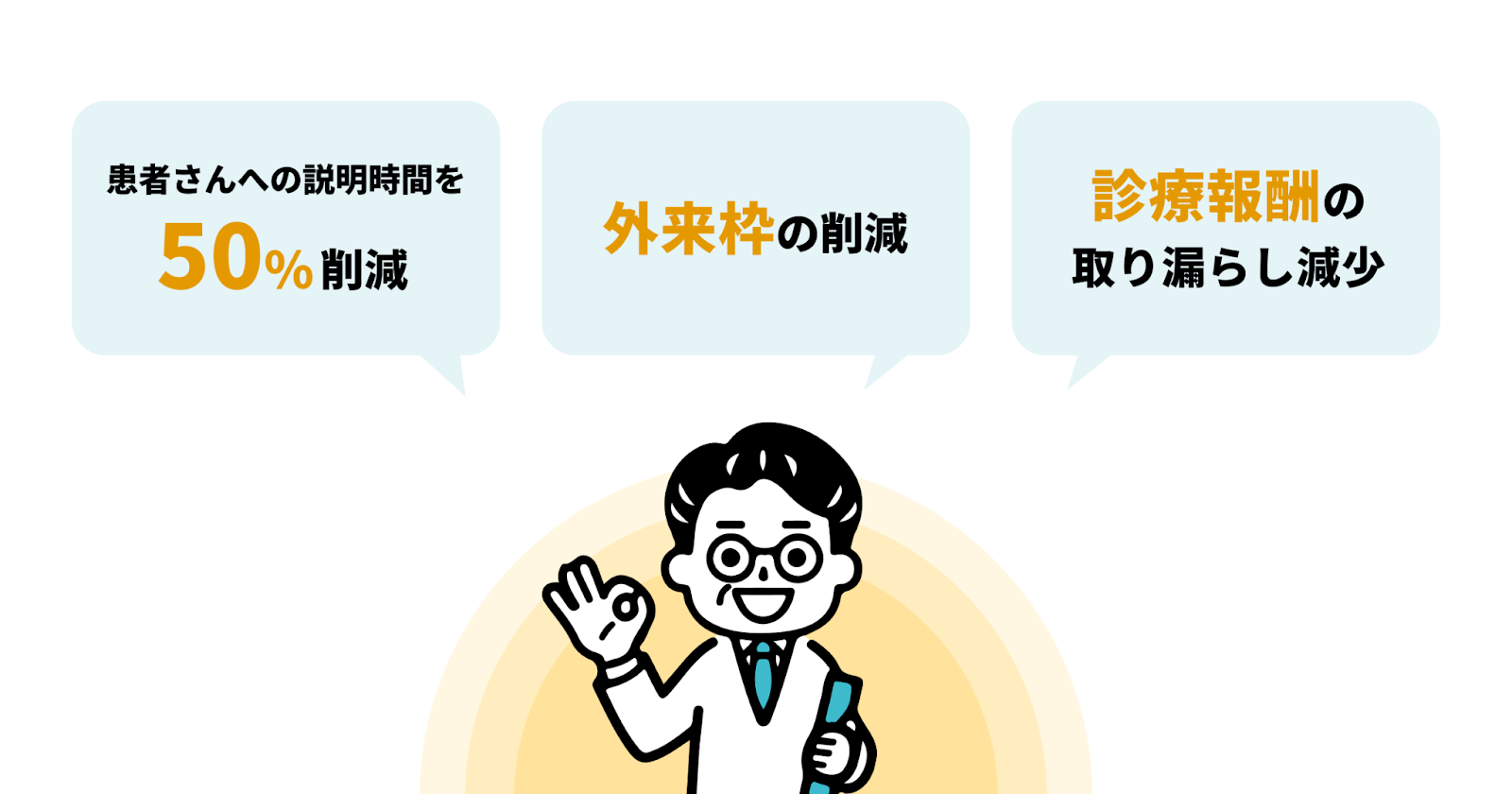 一件一件、時間がかかる患者説明ですが、その内容は定型的なものが大部分を占め、何人もの患者さんに対して繰り返し同じ説明をすることが、医師の業務負担となっています。