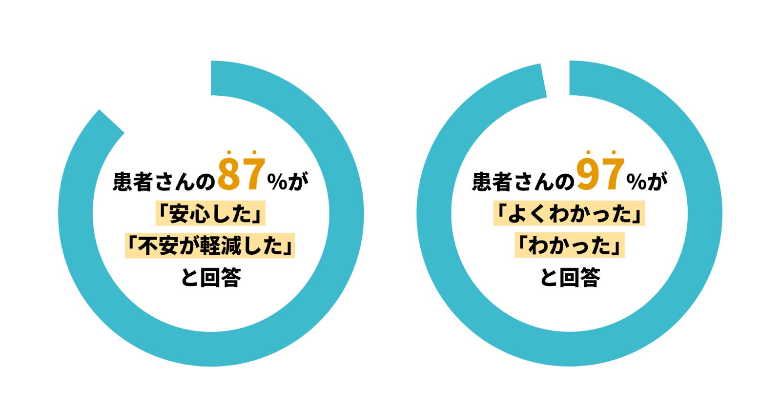 ・87%の患者さんが動画をみることで「安心した」「不安が軽減された」と回答した。(3)
