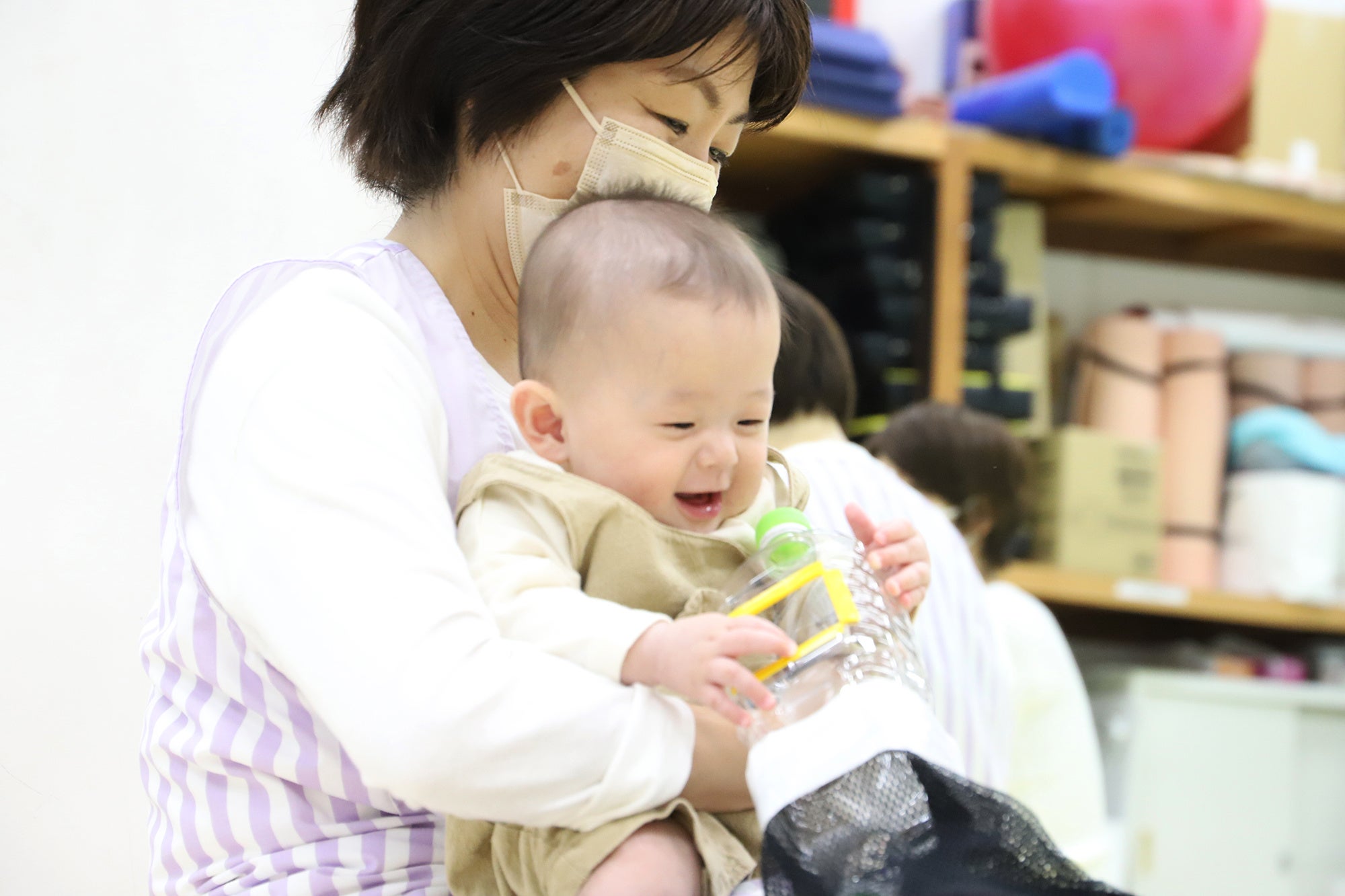 ポットン落とし以外にもお家で作れるおもちゃをいろいろ用意したので、最初緊張気味だったお子様もすぐに夢中になってニコニコ顔♪そのかわいさにスタッフも保育者もメロメロでした。