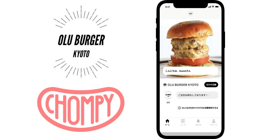 All in One モバイルオーダーサービス「Chompy(チョンピー)」を提供する株式会社Chompy(本社:東京都目黒区、代表取締役:大見周平)は、株式会社タイムプロデュースリンク(本社:京都市上京区、代表取締役:堀部太一氏)が運営する「OLU BURGER KYOTO」にて、2023年4月1日から、当社が提供する公式アプリ導入・運用が開始されることをお知らせいたします。
