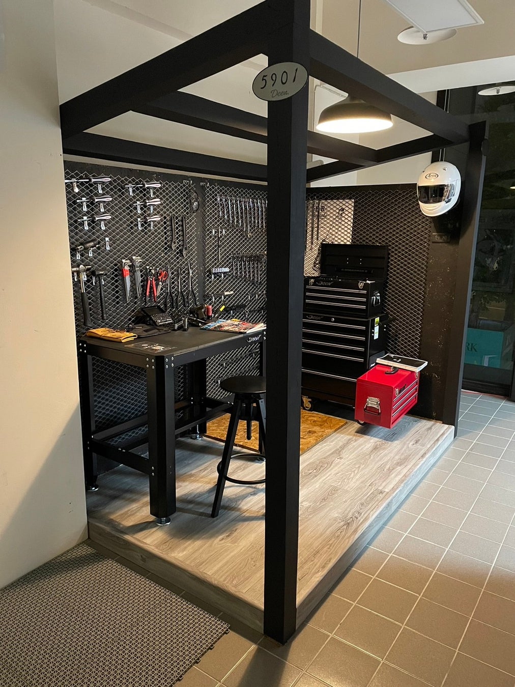 日本のユーザーから長期に渡り高い支持を集める『DEEN』など、きらびやかな工具に囲まれた大人の秘密基地は、夢のガレージライフを描かせる。
