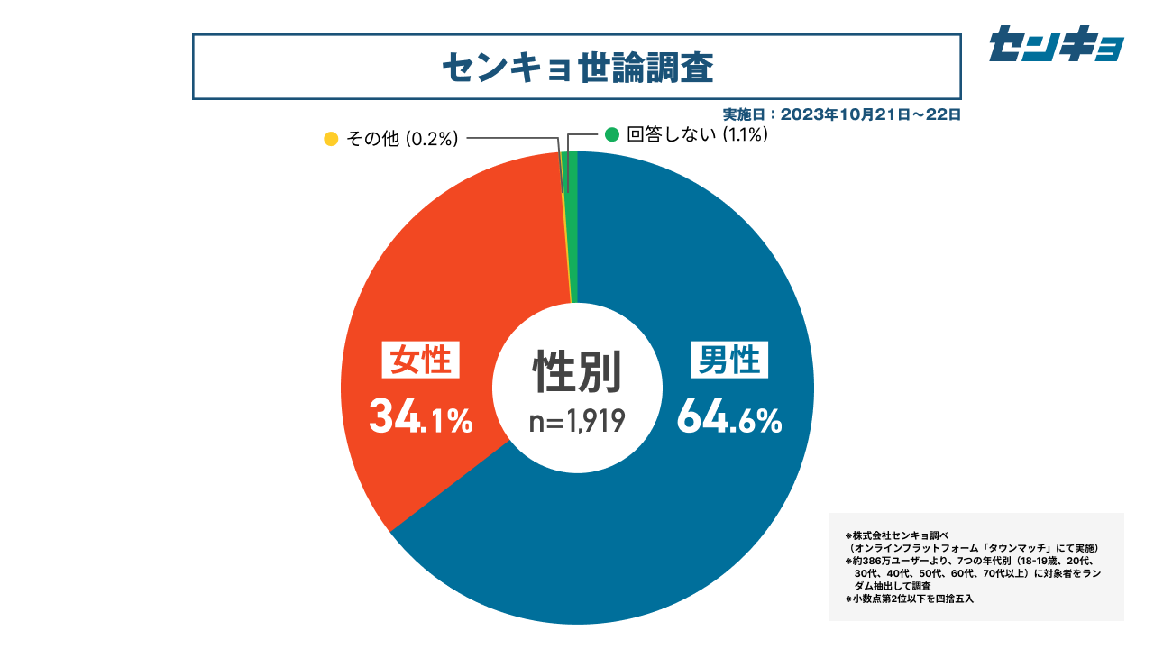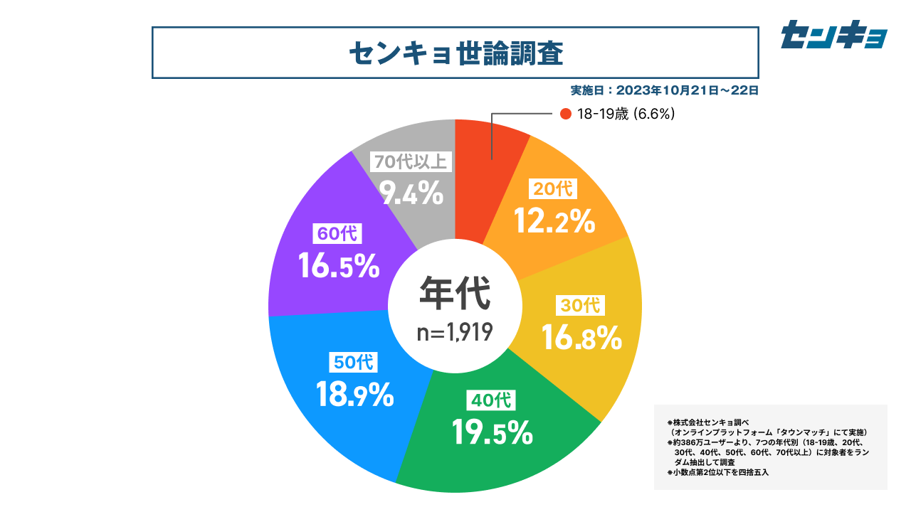 なお、調査結果については、①「タウンマッチ」が全国の各市区町村に人口比で概ね2~4%のユーザーを抱えていて、その分布が実際の地域別人口比と大きく変わらないこと、②できるだけ結果の透明性を守り、見ていただいた皆様に評価を委ねたいという考えから、ありのままを公開しています。弊社の運営する「タウンマッチ」では、従来の世論調査ではなかなかサンプル数の確保自体が難しかった10代20代などの若年層についても、他の年代と遜色ないサンプル数の確保が可能となっています。このため、弊社の調査は「より現実に近い」結果を提供できるポテンシャルがあると考えております。