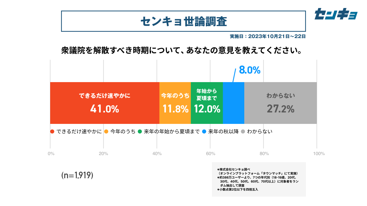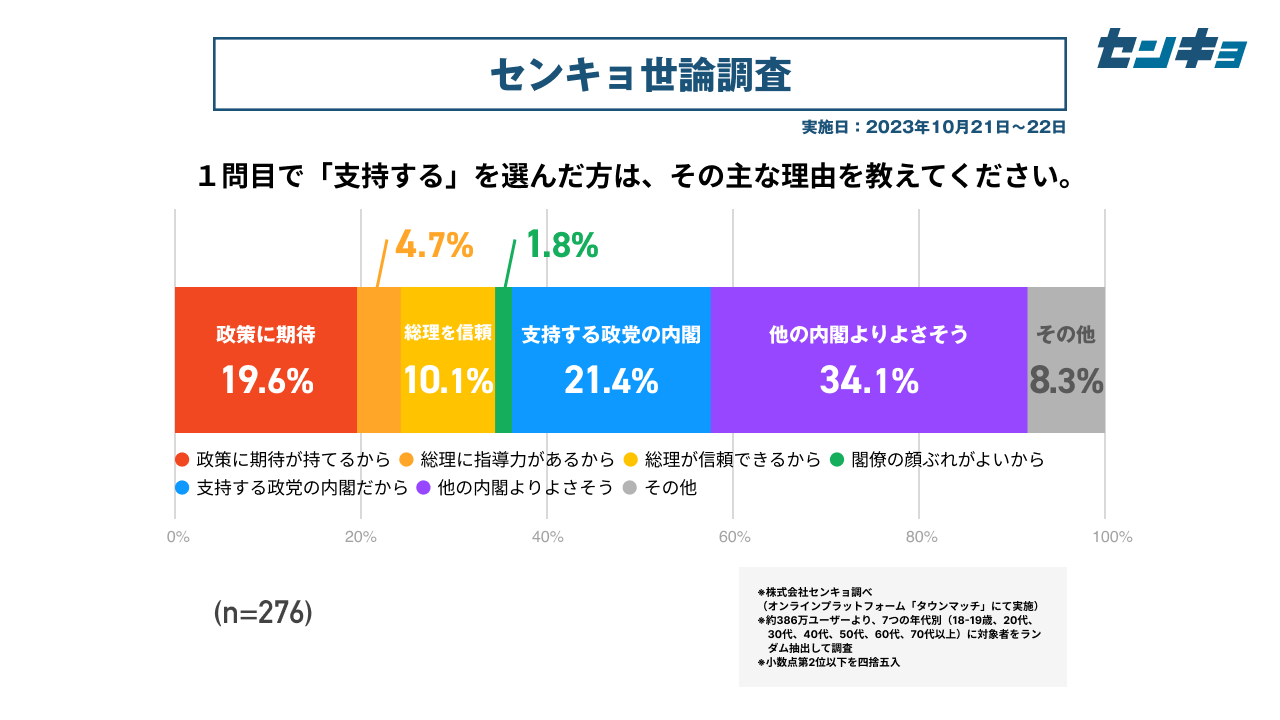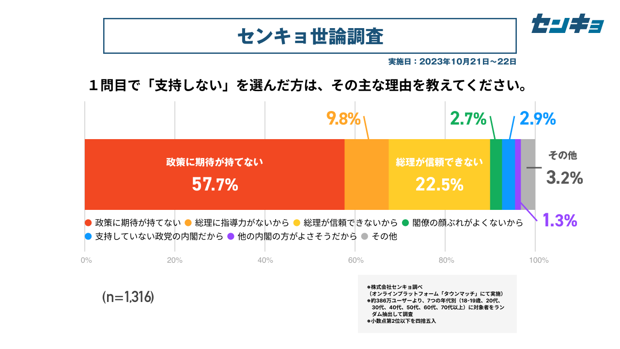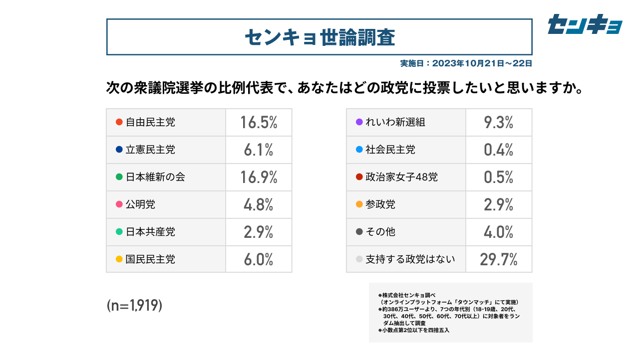 【株式会社センキョ】タウンマッチ定期世論調査、10月の内閣支持率は12.9%