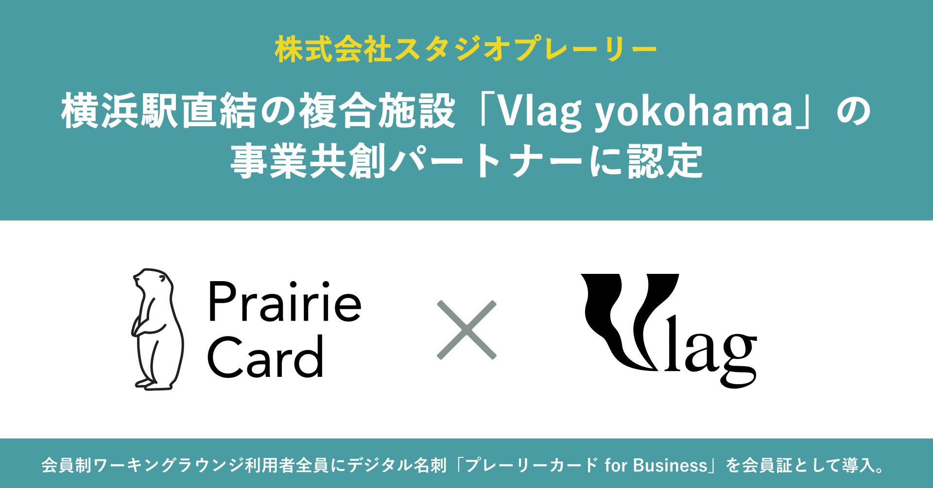 デジタル名刺「プレーリーカード」を提供する株式会社スタジオプレーリー(本社:東京都渋谷区 共同代表:片山大地・坂木茜音)は、横浜駅直結の複合施設「Vlag yokohama(フラグヨコハマ)」(運営:株式会社相鉄アーバンクリエイツ、東急株式会社、UDS株式会社)の事業共創パートナーに認定されたことをお知らせいたします。これにより、Vlag yokohamaの会員制ワーキングラウンジにおいて、当社のデジタル名刺「プレーリーカード」が会員証として導入され、会員同士のコミュニケーション活性化を図ります。また、プレーリーカードを活用したコミュニケーションを促進させるイベント企画・実行も行っていく予定です。