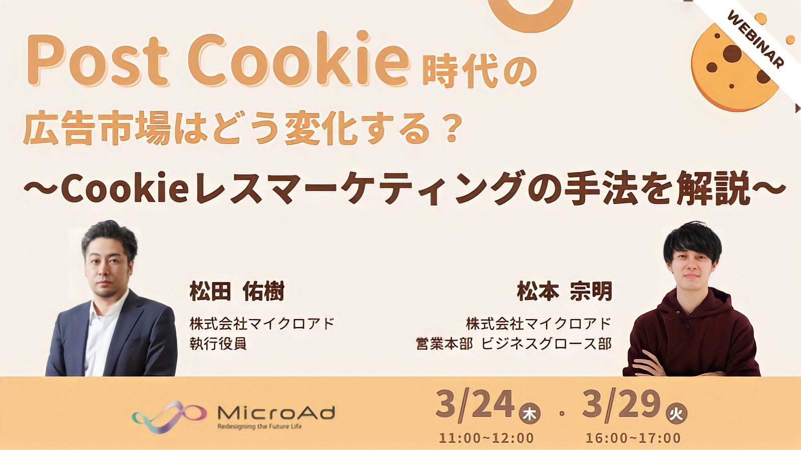 【3月開催:広告代理店様向けセミナー】マイクロアド主催 Post Cookie時代の広告市場はどう変化する?~Cookieレスマーケティングの手法を解説~