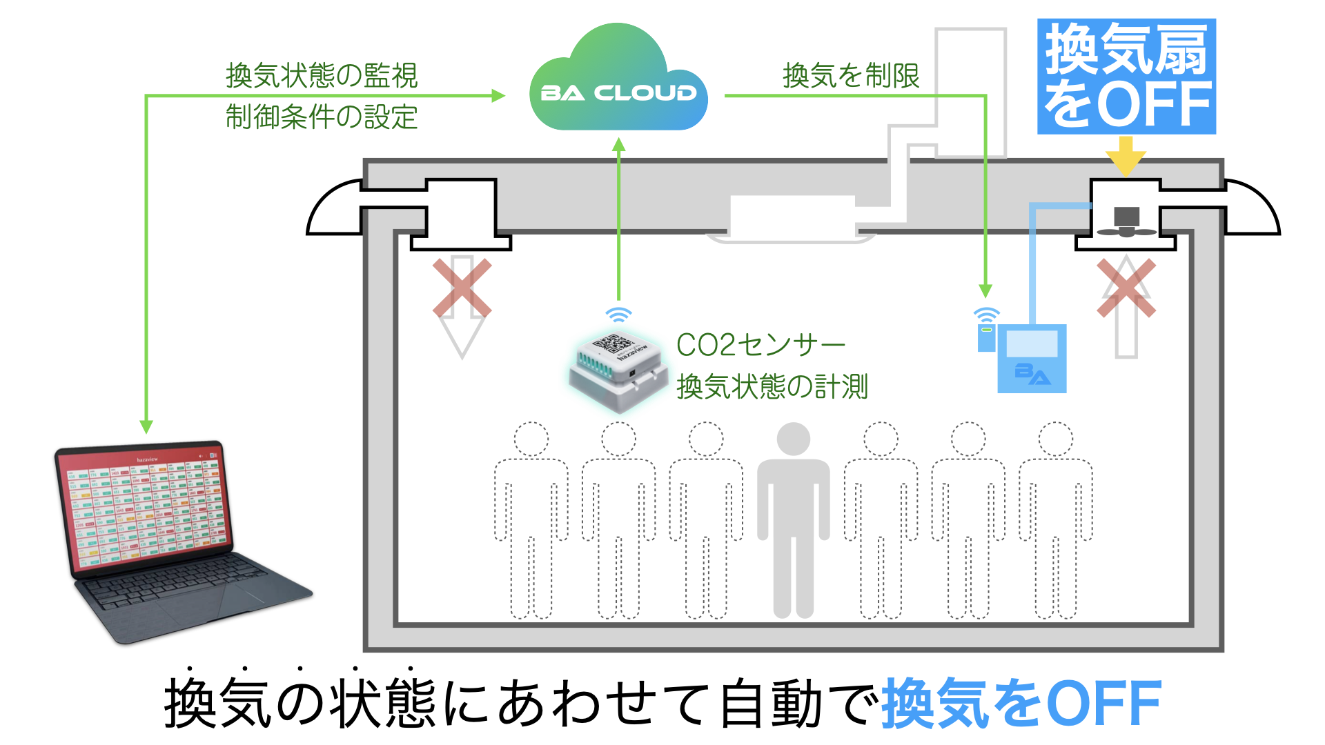 脱炭素・電力値上げにIoTで対応。換気を自動制御しエアコンの電力使用量と電気代を最大50%削減する「BA CLOUD(ビーエークラウド)」を提供開始