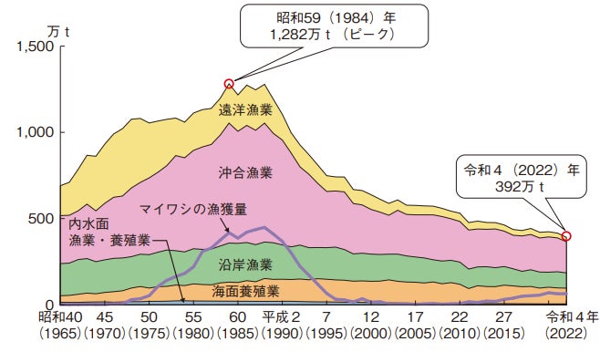 日本の漁業・養殖業の生産量は1980年代の3分の1以下まで落ち込み、沿岸漁業だけでも6割以上が減少しています。そのため市場に流通する魚は激減し、価格も他の食材に比べて極端に高騰しています。飲食店にとっても、魚を安定的に仕入れ、提供すること自体が難しくなりつつあるのが現状です。