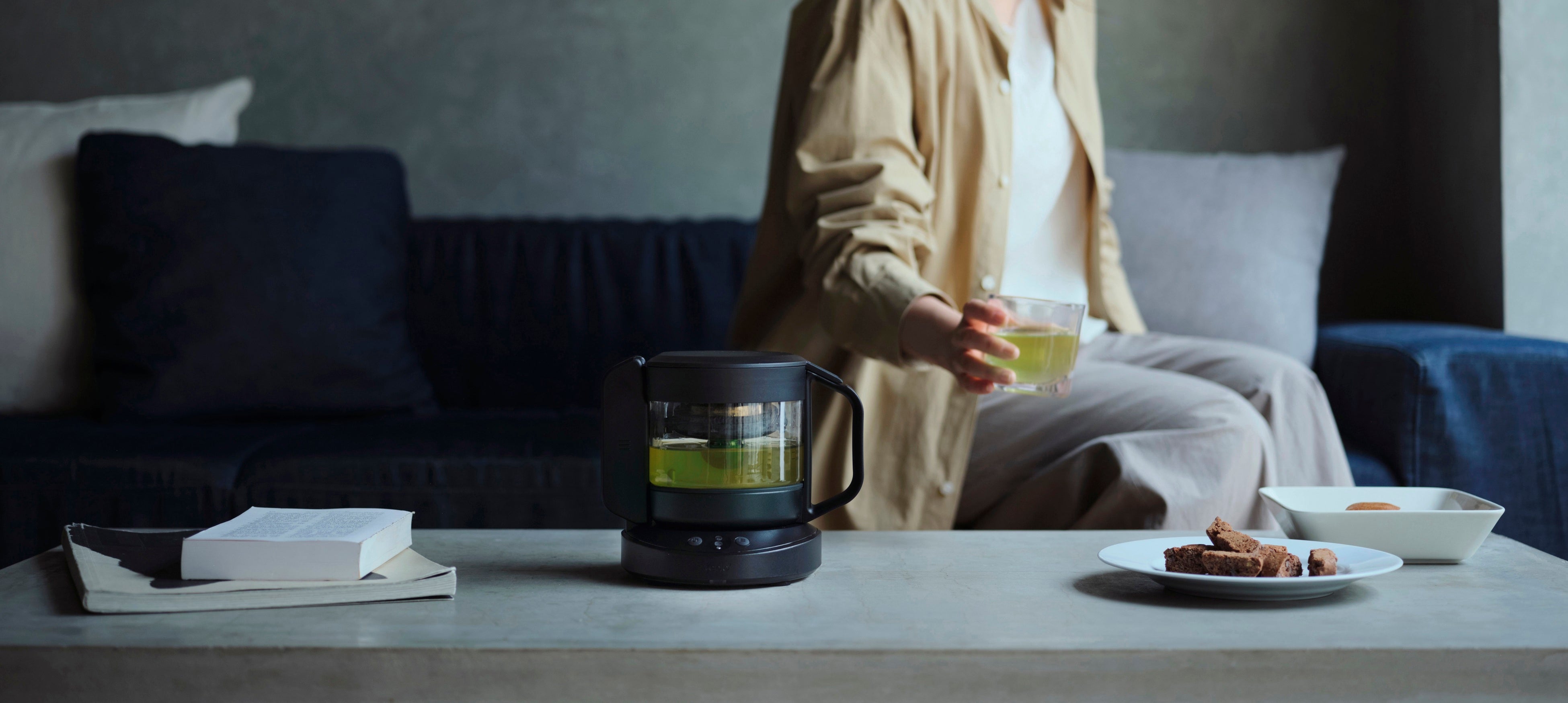 また、古来、お茶のプロが行ってきた、飲み手の仕草や表情、味の好みに応じて抽出条件を調整し、その時の飲み手の状態に応じた一番美味しい味と香りでお茶を淹れるという職人技を、テクノロジーで再現すべく試作を重ねていき、世界初の「パーソナライズ抽出機能」の実装を実現しました。内蔵する6つのセンサーで、飲み手の状態や気分を解析し、最適なお茶を抽出します。