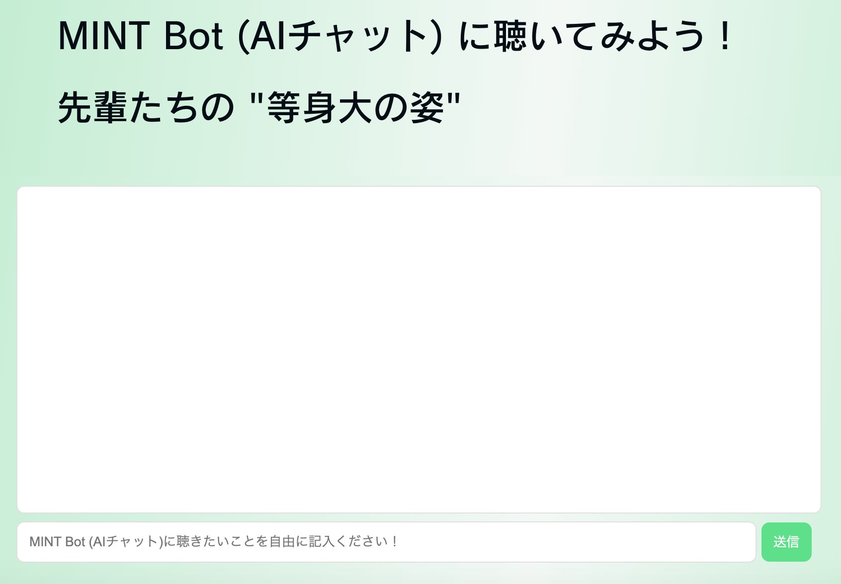 MINT Bot(AIチャット)に自由に質問を入力。