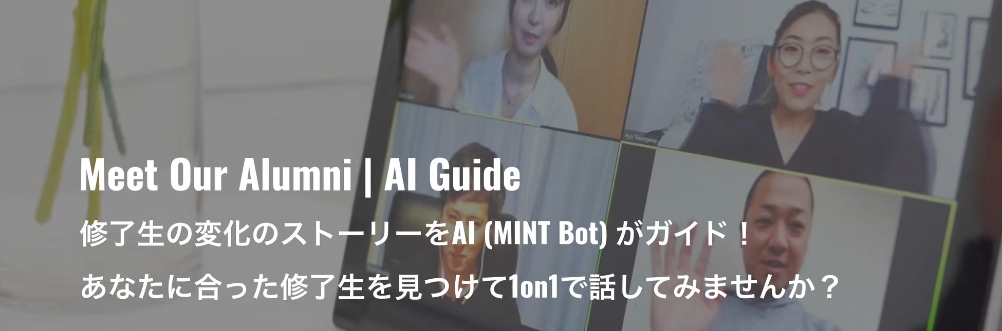 「MINT Bot」は、AIを活用したチャットベースのガイド機能を搭載し、一般の受講検討者が自身のキャリアや悩み、興味に合った修了生と出会える仕組みを提供します。