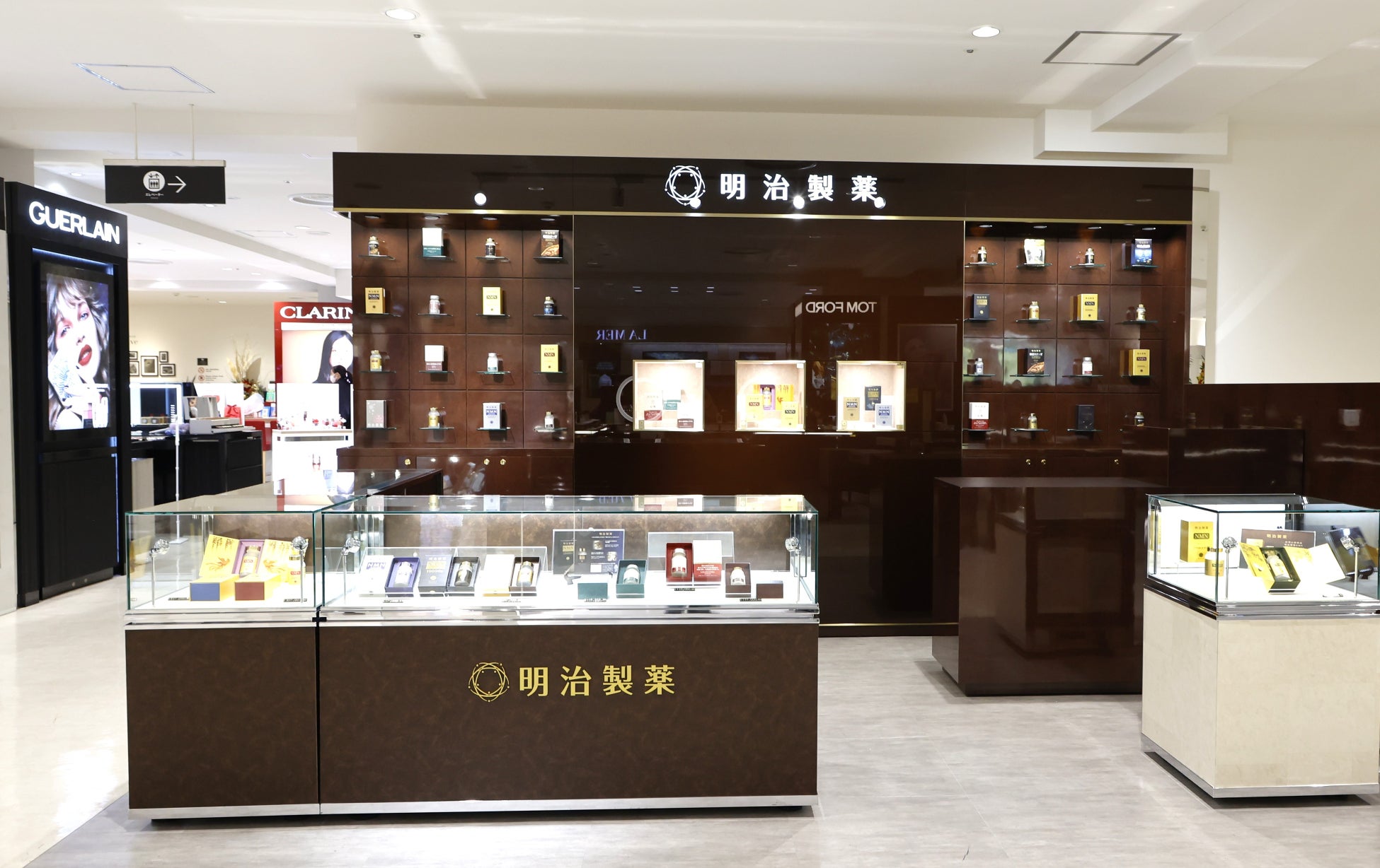 明治製薬のサプリメントが全ラインナップを取り揃えており、お客様がラグジュアリーな空間の中で製品をご覧いただけるスタイルとなっております。また幅広い健康ニーズに対応するサプリメントが並び、健康や美容に関心のあるすべての方に最適なアイテムを見つけていただけます。ゆっくりとくつろぎながら製品をお選びいただける特別な空間をご用意しております。
