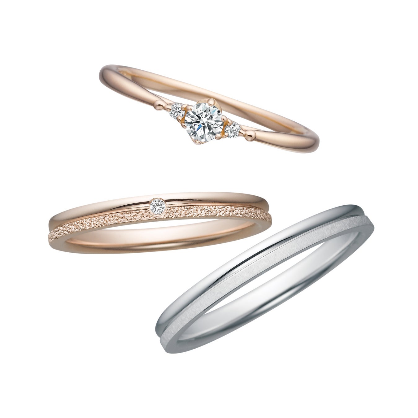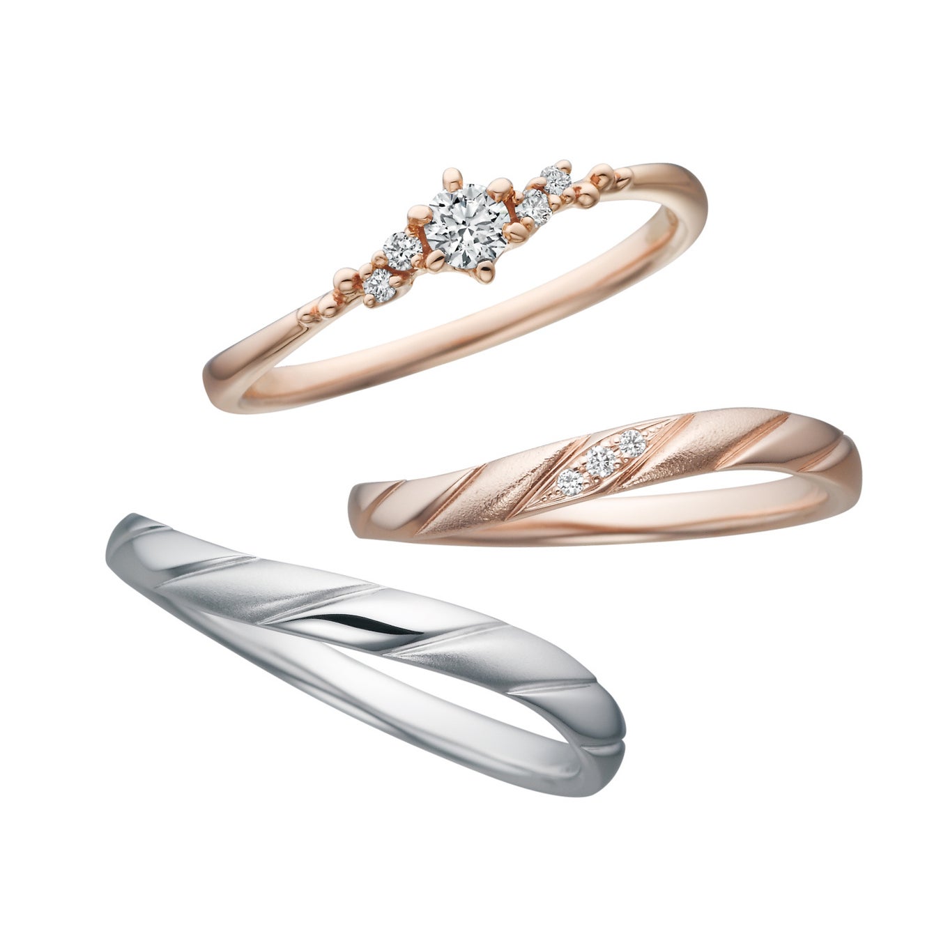 価格:(上)エンゲージリング 176,000円(税込) (中・下)マリッジリング 各99,000円(税込)