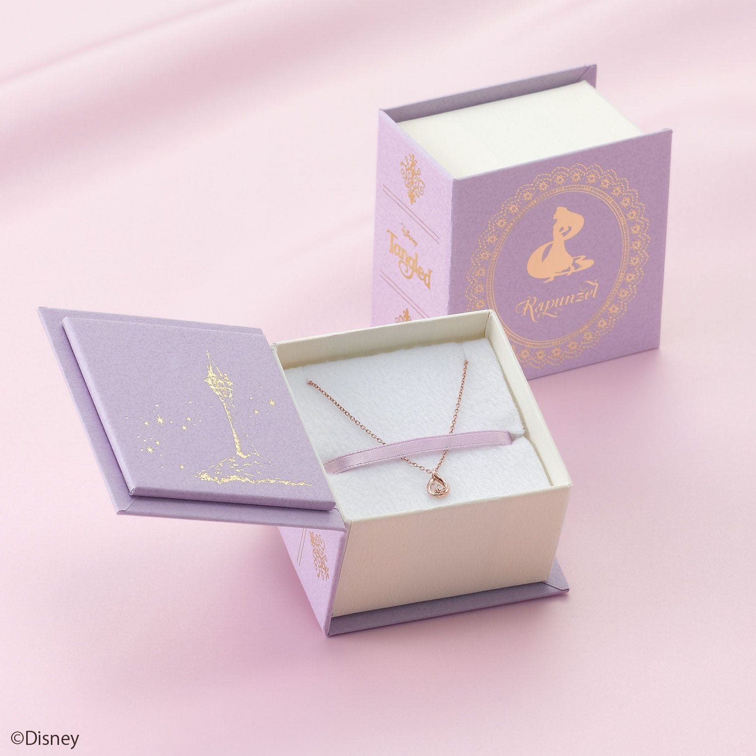 ラプンツェルの長い魔法の髪の毛をイメージしたプチペンダント。シンプルで身に着けやすいしずく型に、白色のキュービックジルコニアが輝きます。ピンクゴールドカラーがラプンツェルを想わせるかわいらしい雰囲気は、プレゼントとしても喜ばれるデザインです。