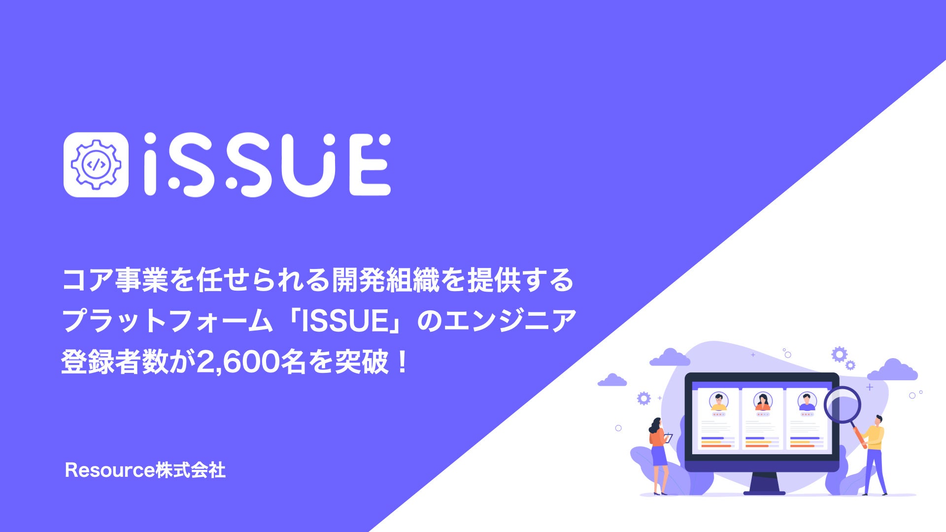 Resource株式会社(所在地:東京都練馬区、代表取締役:寒河江 京我)が運営するエンジニアプラットフォーム「ISSUE」のエンジニア登録者数が2,600名を突破したことをご報告いたします。