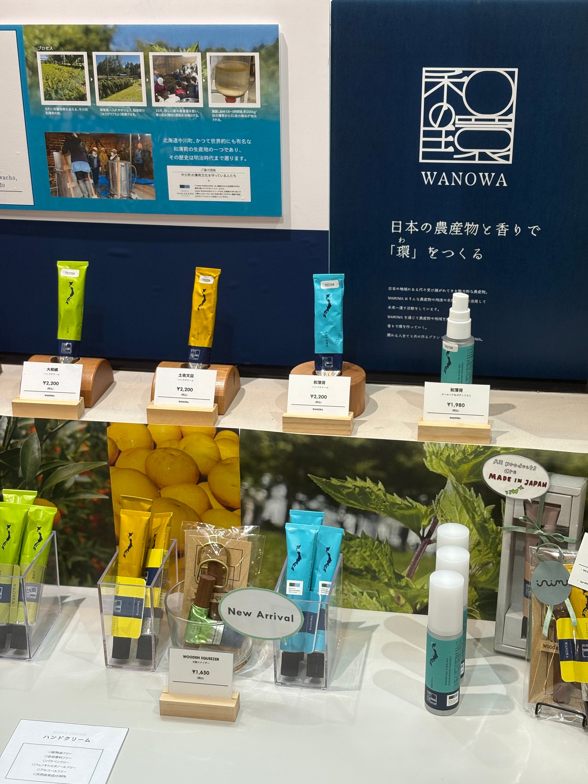 WANOWAシリーズの中でも特に人気のハンドクリーム全種のほか、ルームスプレー、ウッド商品、クールヘア&ボディミストなど目白押し。全国各地で採れる、農産物の豊かな香りをぜひご体感ください。