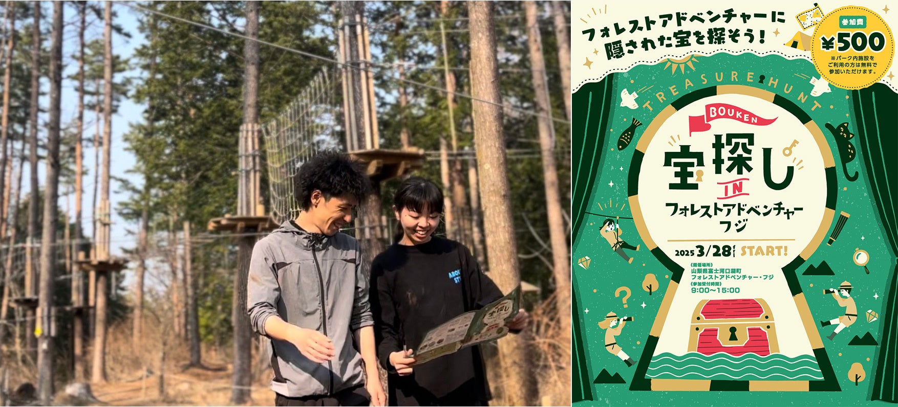 株式会社フォレストアドベンチャー(本社:東京都渋谷区、代表取締役:田桑正樹)は、富士山麓の大自然を舞台にした本格的な謎解きアドベンチャー「宝探し in フォレストアドベンチャー・フジ」を、2025年3月28日(金)より今期限定で開催いたします。