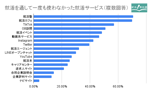 - 就活を通して一度も使わなかった就活サービスは何ですか?(複数回答)