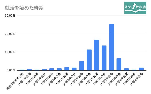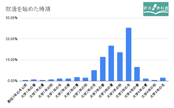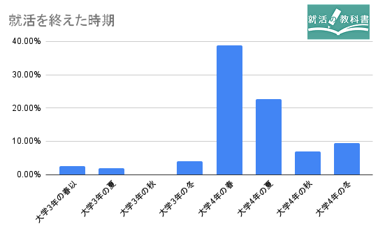 65%以上の就活生が大学3年生から就活を開始、大学4年生の夏で約60%の就活生が就活を終えている