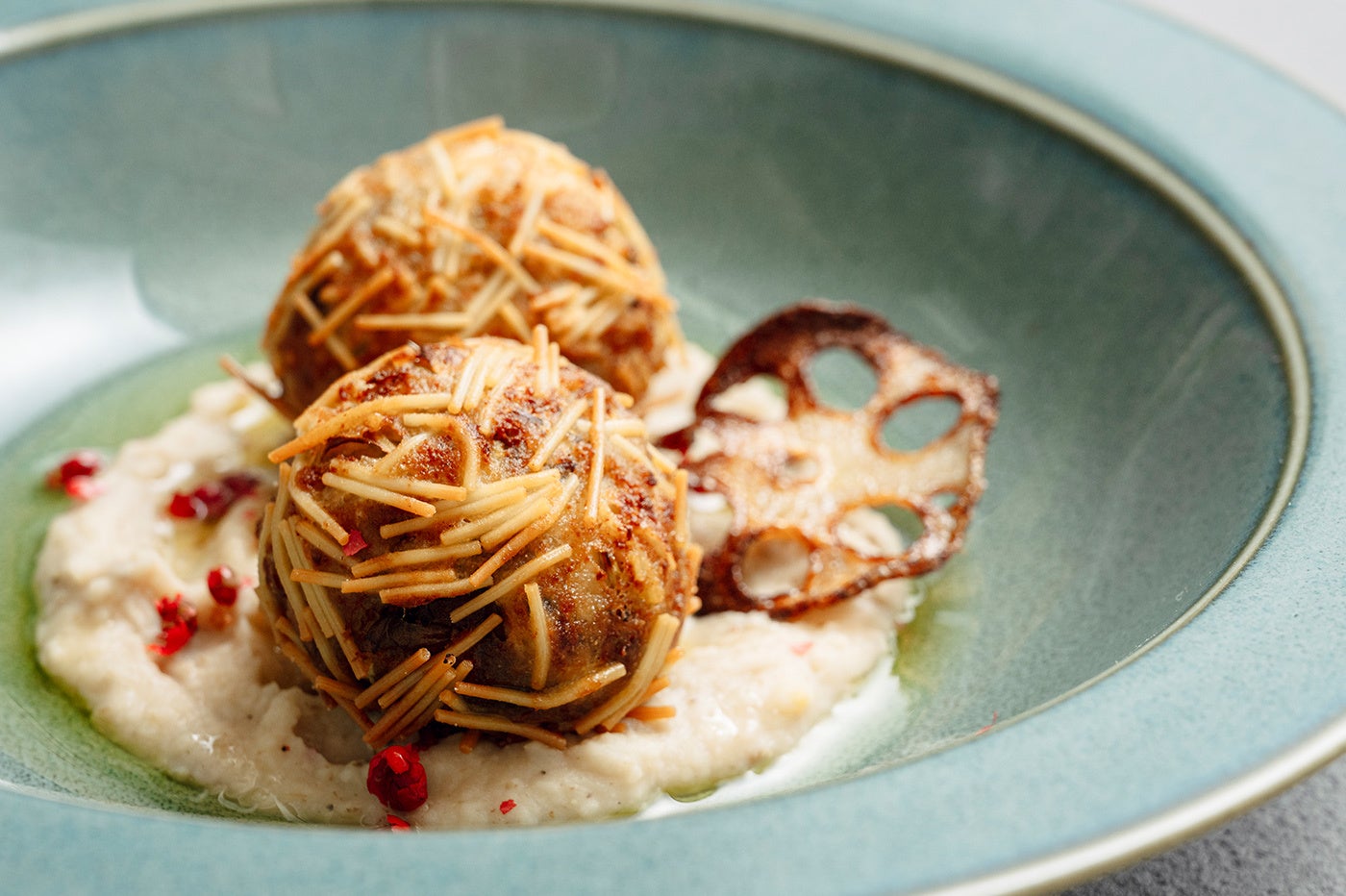 マッシュルームと里芋のケフテデス 白インゲンのフムス