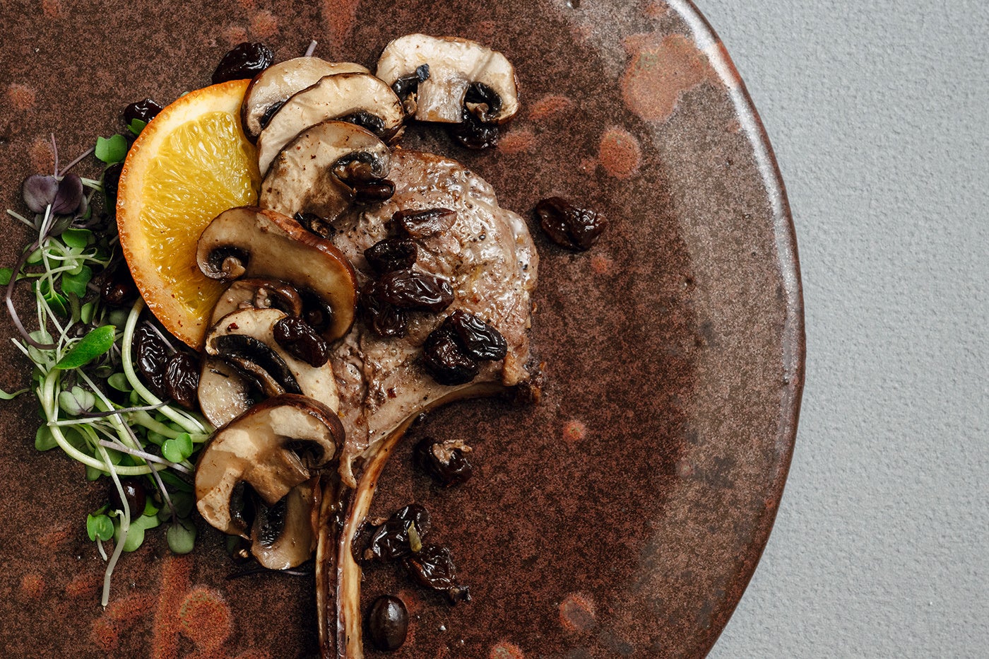 SHEEP FREAKSのタスマニアラムチョップと マッシュルームのコーヒーオランジェ