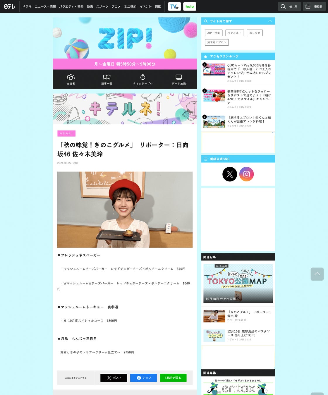 日本テレビ系列『ZIP!』にて、MUSHROOM TOKYOが取り上げられました。