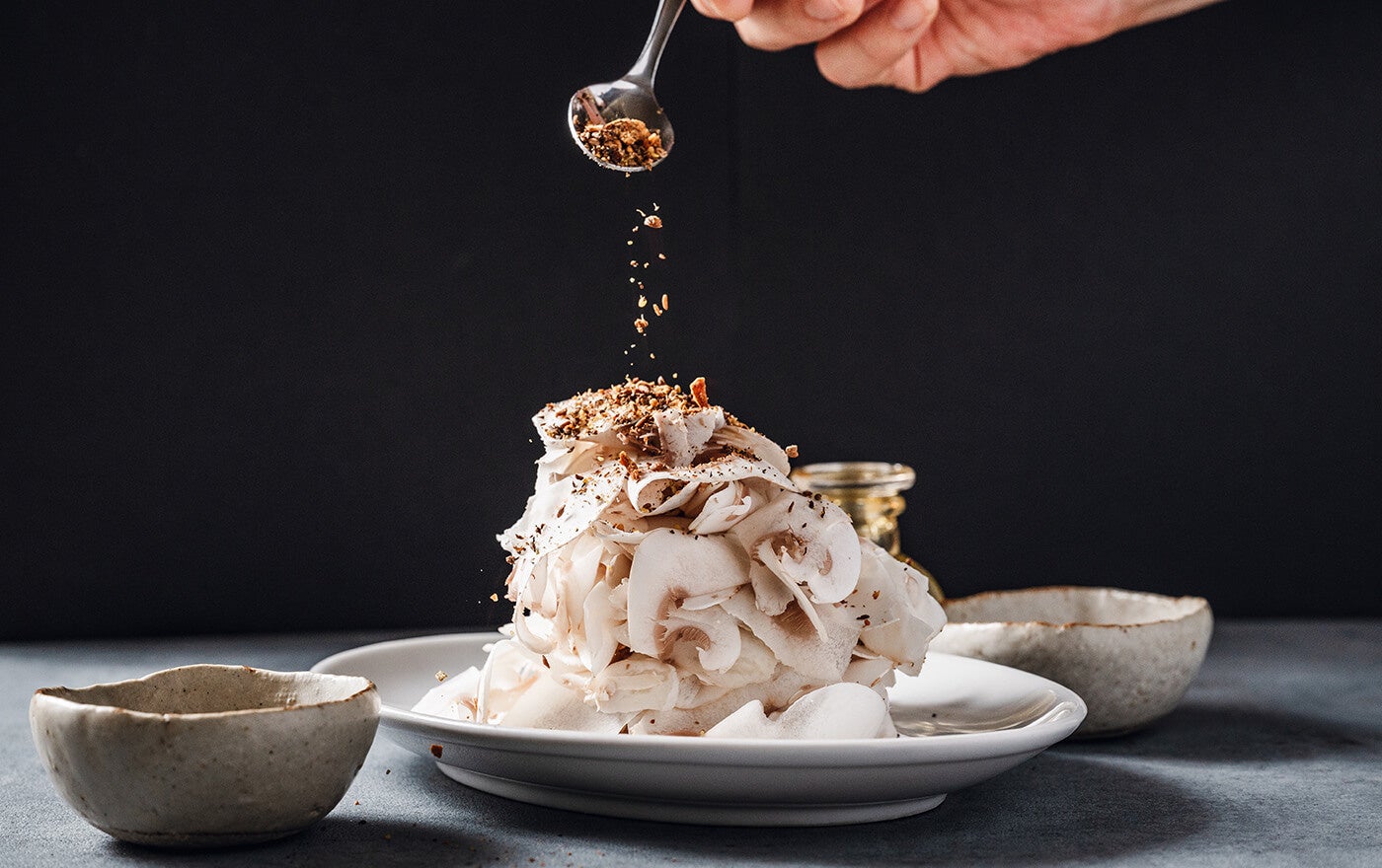 ひらひらマッシュルーム 胡桃と塩麹のビネグレット