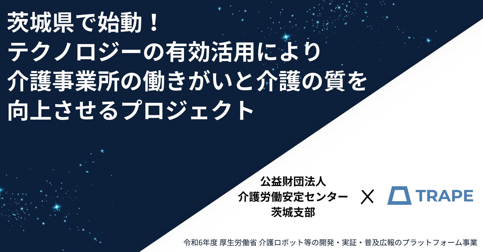 介護における生産性向上ガイドライン作成など、2017年から介護分野の生産性向上のためのさまざまな国の施策づくりで中心的な役割を担い、ウェルビーイングに溢れた介護事業所を創出するために「生産性向上」「働きがい向上」「リーダー育成」の3つを一度に実現することができる生産性向上伴走支援サービス「Sociwell(ソシウェル)」を展開している株式会社TRAPE(本社:大阪府大阪市、代表取締役社長:鎌田大啓)は、この度令和6年度 厚生労働省 介護ロボット等の開発・実証・普及広報のプラットフォーム事業(以下PF)においてPF茨城相談窓口における業務アドバイザー業務委託契約を公益財団法人介護労働安定センター茨城支部様と締結いたしました。