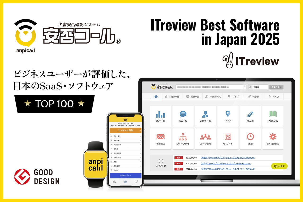 株式会社アドテクニカ(本社:静岡県静岡市、代表取締役:下村 聡)が提供する安否確認システム「安否コール」は、IT製品レビューサイト「ITreview」(運営:アイティクラウド株式会社)において、国内のユーザ評価に基づき選出される「ITreview Best Software in Japan 2025」にて【TOP100】製品に選出されました。