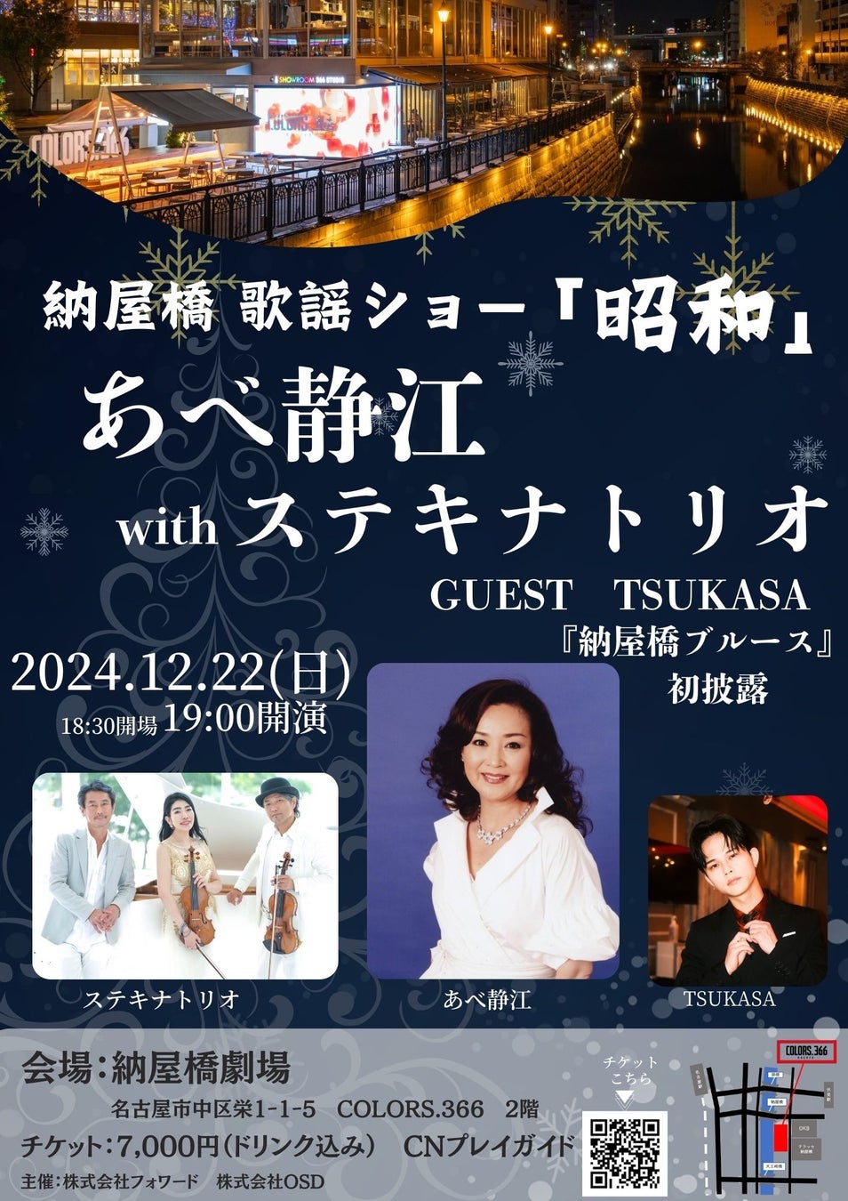 『納屋橋 歌謡ショー「昭和」あべ静江with ステキナトリオ GUEST TSUKASA』で、