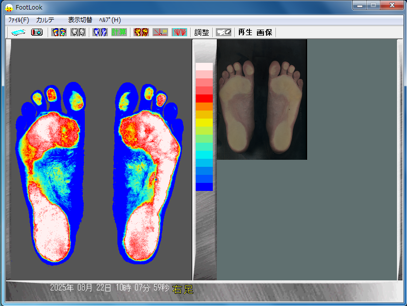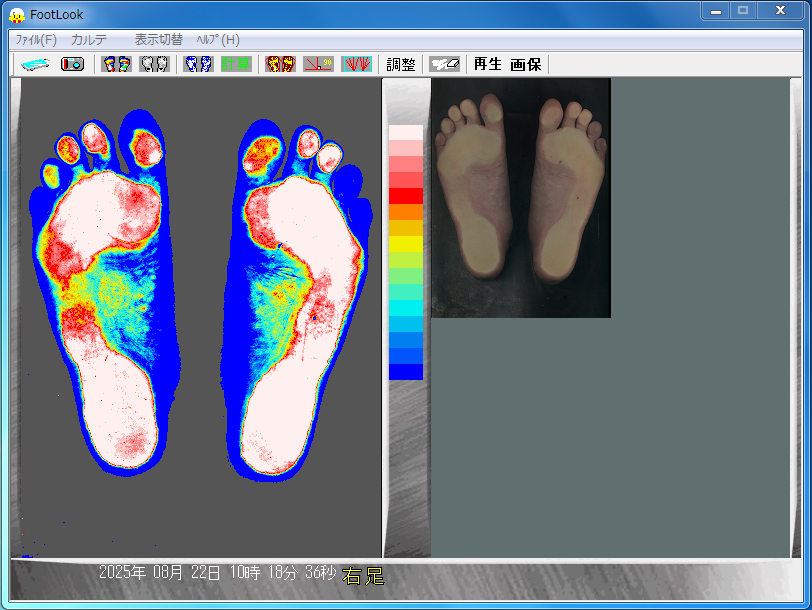 その結果、着用前(画像左)は足指の接地が十分でなかったのに対し、着用後(画像右)は足指全体にしっかりと体重がかかっていることが確認されました。