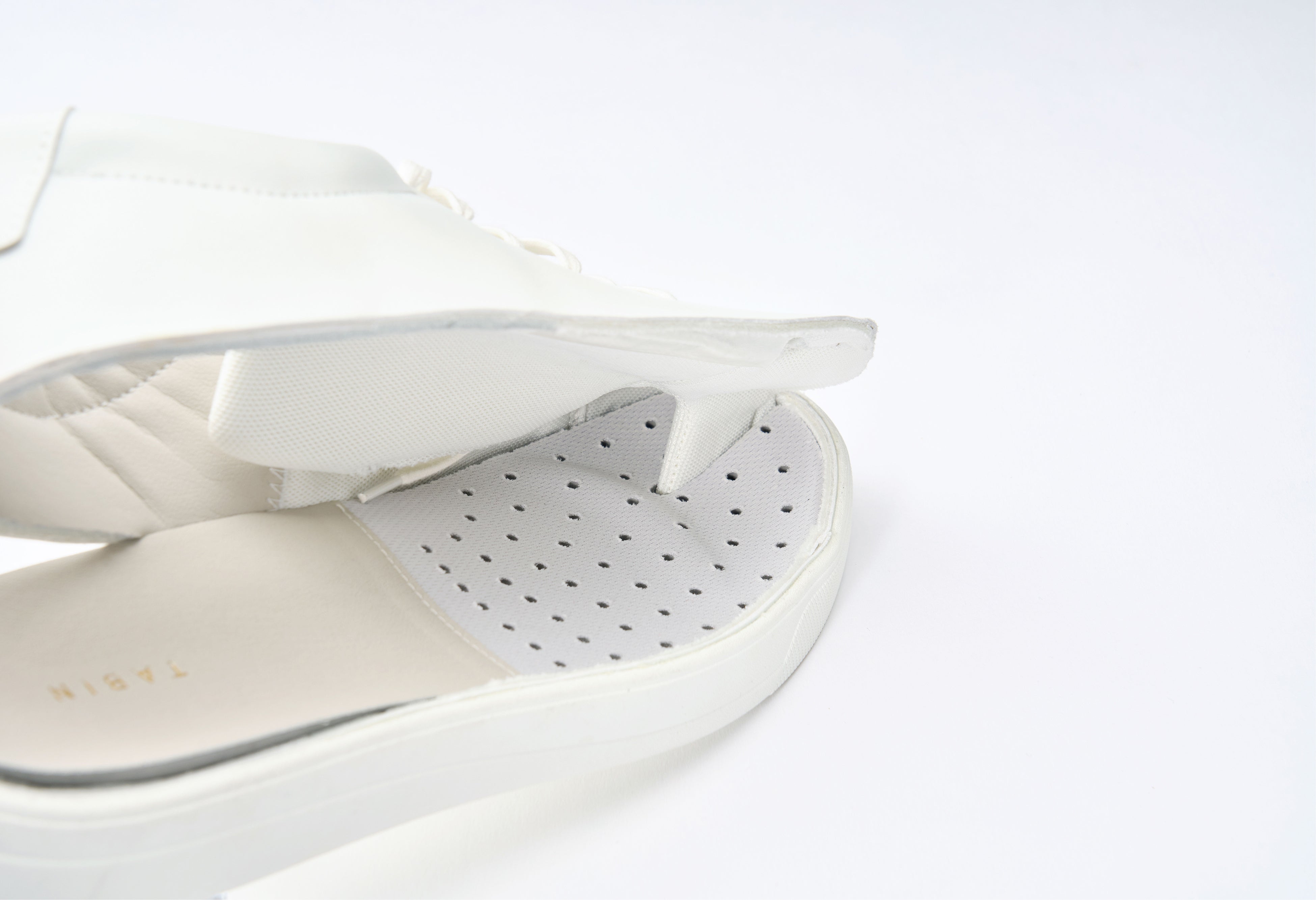 機能性はもちろん、デザイン性にもこだわり、高品質でレザー調のシンセティックレザー(人工皮革)を採用。シューホールの金具をなくし、縫い目やパーツを最小限にすることで、スマートでミニマルなデザインを実現しました。ビジネスカジュアルにも自然に馴染むだけでなく、汚れや雨にも強く、日常使いに最適です。カラーはブラックとホワイトの2色展開。シーンやスタイルに合わせてコーディネートをお楽しみいただけます。