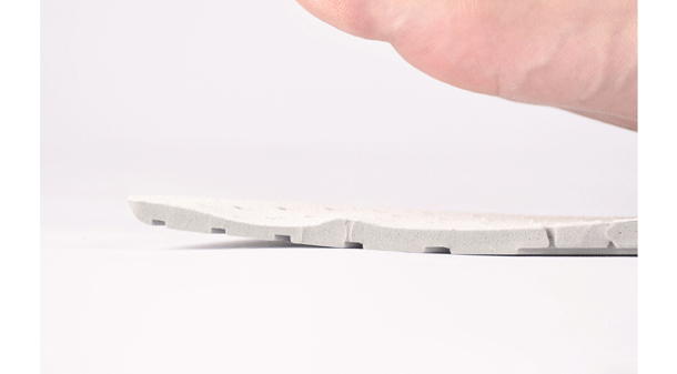 インソールは足裏にフィットするよう部分的に凹凸を設けており、足指を使いやすい設計です。自然な歩行をサポートします。