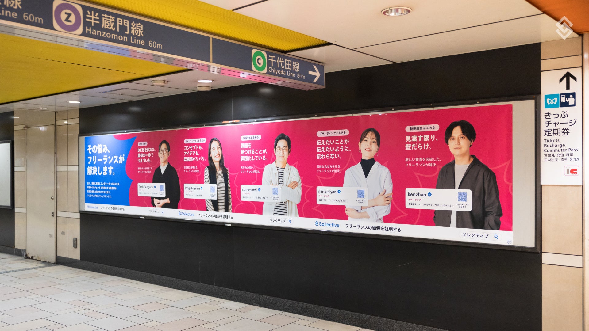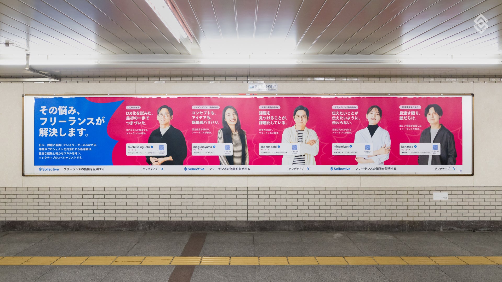 ハイスキルフリーランスのマッチングサービス『Sollective (ソレクティブ)』、フリーランスたちをモデルに起用した交通広告を都内9カ所で開始。