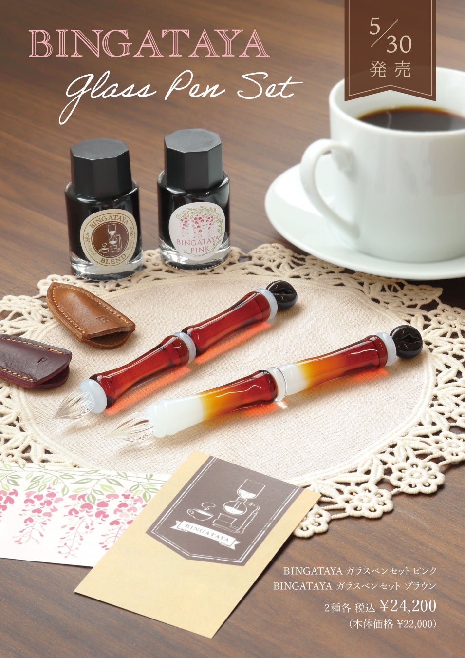 カフェで好評だったコーヒー「BINGATAYA ブレンド」をモチーフとしたガラスペンセットです。