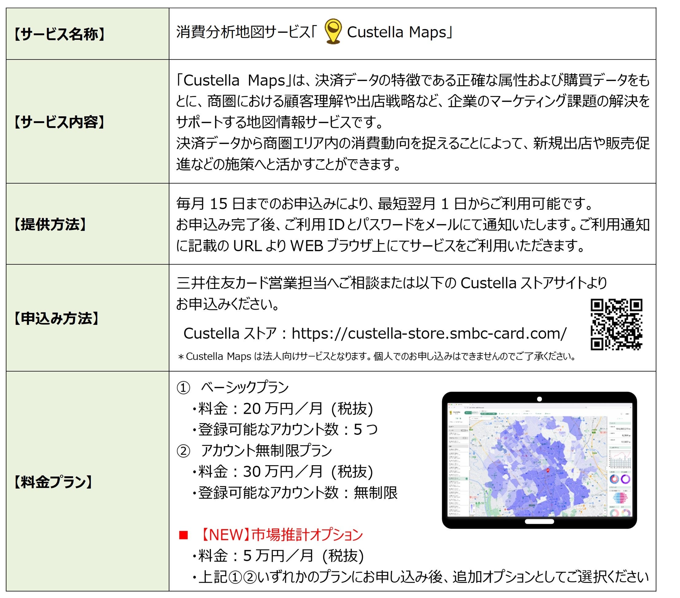 本推計手法により算出した消費データは、三井住友カードが提供するデータ分析支援サービス「Custella」において8月1日より提供を開始いたします。