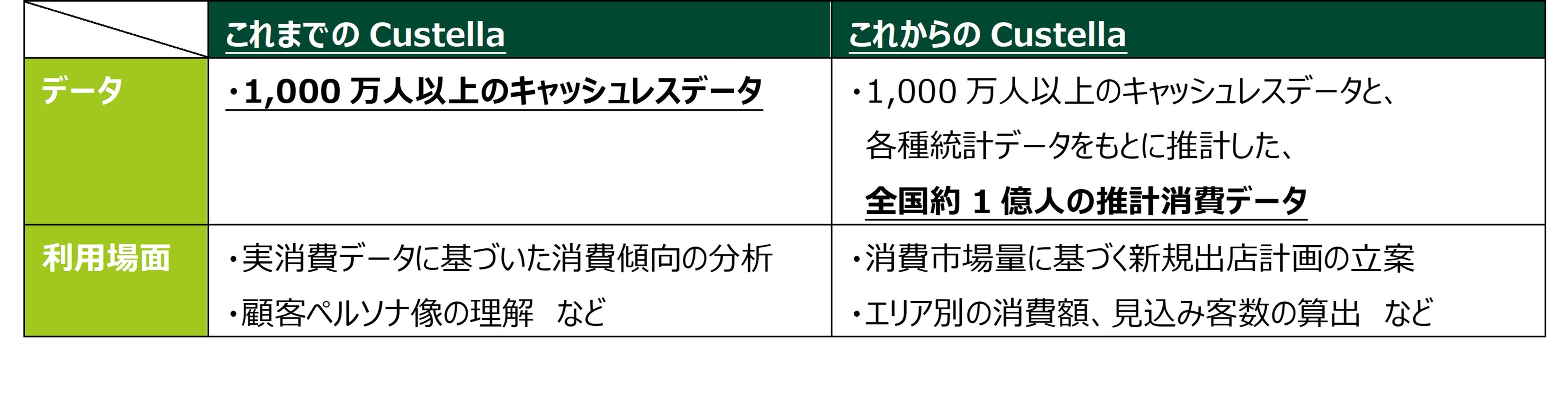 データ分析支援サービス「Custella」全ての決済手段を網羅した拡大推計消費データに対応