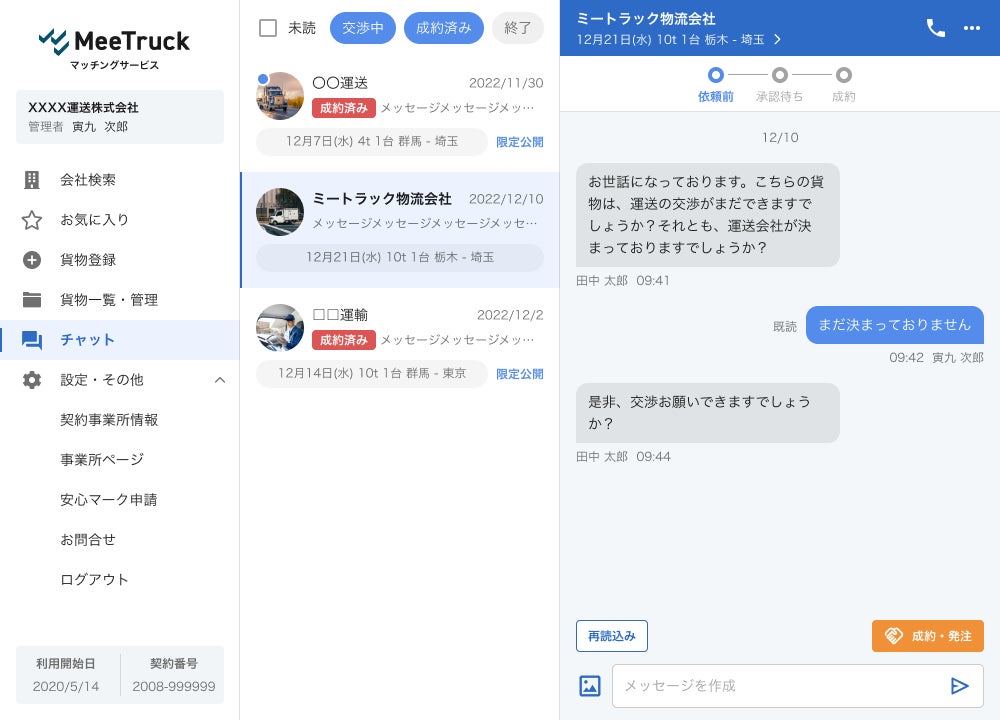 ・荷主としての「チャット」での交渉:仕事をしたい会社からの照会の電話を減らすとともに、短時間で複数の相手との交渉が可能になります