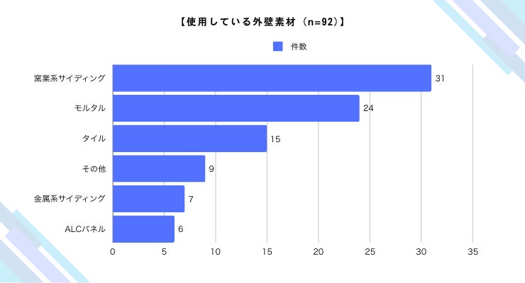 「ご自宅の外壁素材は何ですか?」(n=92)と質問したところ、次の結果が得られました。