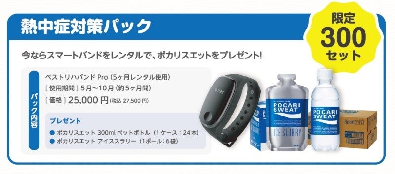 新たに高齢者の熱中症を防ぐアラート機能を搭載したスマートバンド『ベストリハバンドPro』を開発したベストリハ株式会社は、レンタルして頂いた方に『凍らせて飲む、ポカリ』プレゼント企画を開始いたしました。