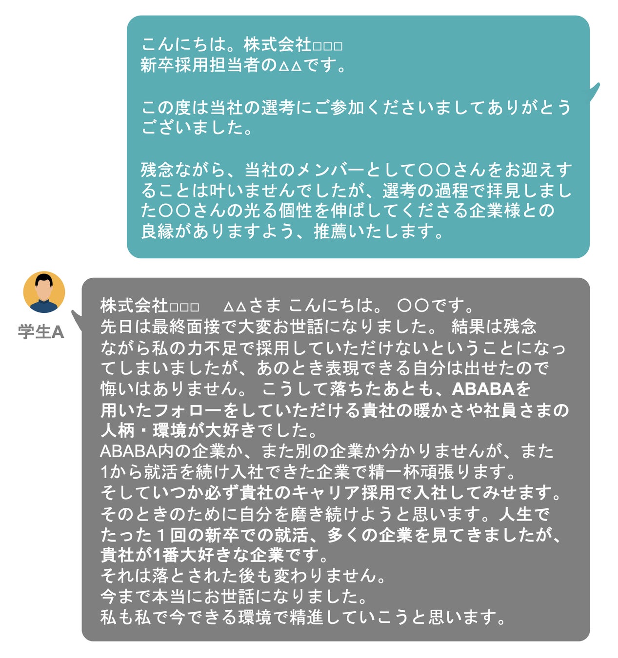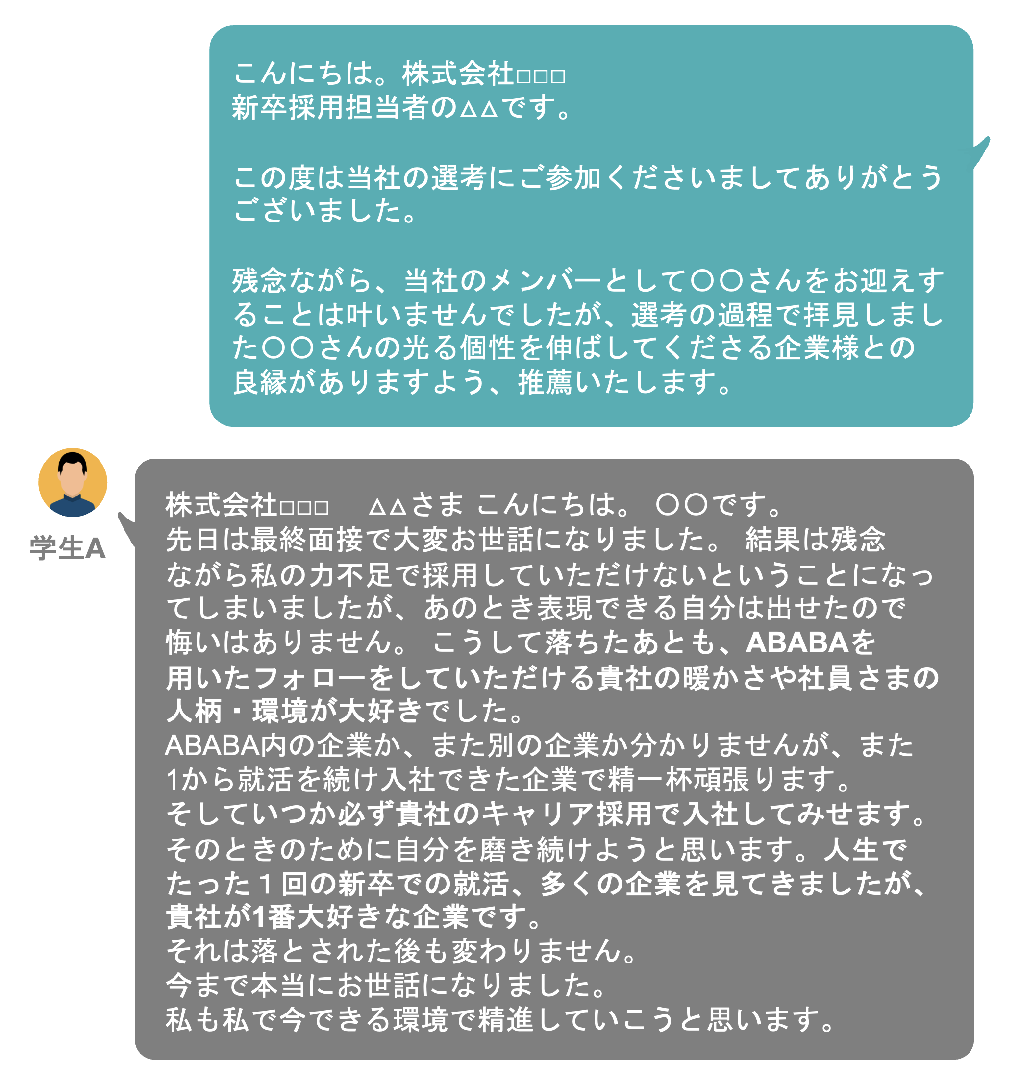 また同時に、不採用後も企業と学生の関係性を良好で、継続的なものに変えていきます。