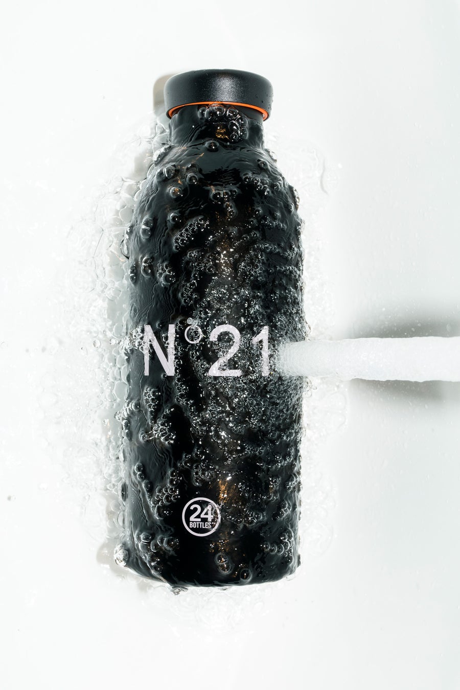 サステナビリティを追求するイタリアのブランド「24BOTTLES」とのコラボレーションにより、ハイクオリティな携帯用 WATER BOTTLEをN21仕様にアップデート。24BOTTLESの中でも最も高い性能を誇るCLIMA BOTTLEは暖かいドリンクは12時間、冷たければ24時間温度をキープする特殊な構造を持っています。全てマットなブラックでカラーを統一することで、N21 の世界観を反映しています。