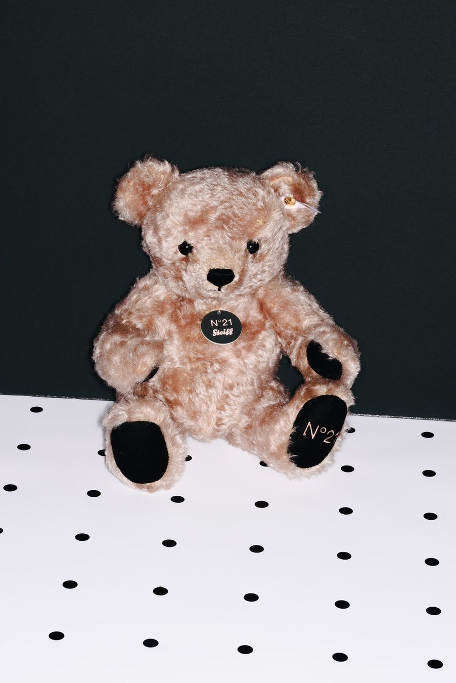 「Steiff (シュタイフ)」は1880年にドイツで創業し、世界で初めてテディベアを作りました。職人の手作業で一体ごと丁寧に作られたハートフルなぬいぐるみは、世代や国境を超えて⻑く愛されてきています。GARAGE VENTUNOとのコラボレーションでは、N21のコンセプトカラーであるヌードの色 を忠実に再現したスタイリッシュなテディベアが誕生。N21ロゴとシリアルナンバーが入り、オリジナルのギフトボックス付きです。