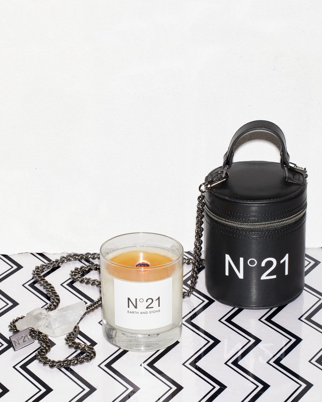 DAICHI MIURAが手掛ける「EARTH AND STOVE (アースアンドストーブ)」とコラボレーションしたクリスタルを沈めたキャンドル。ゼラニウム、ホーリーフ、ヒノキの天然精油を調合した香りは、浄化や癒しをもたらしてくれるのでおうち時間にぴったり。ケースには N21のロゴ入りのバニティバッグが付属しており、コスメや小物入れとしてお使いいただけるほか、チェーンを付けてお手がけ用のバッグとしてお持ちいただける仕様になっています。