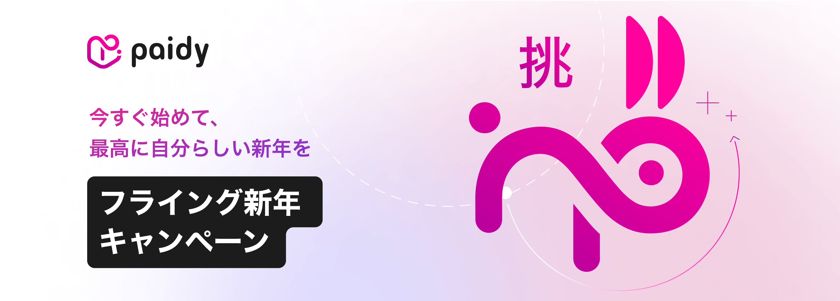 2022年も残すところあと約1ヶ月。今年の1年を振り返り、新たな年に向けて、新年の抱負を考え始める方もいらっしゃるのではないでしょうか。2023年の抱負がすでにある方も、これから考える方も、実は始めたいと思った時こそが絶好のタイミング。「夢に自信を、心に余裕を持てる世界を作る」をパーパスとして掲げる株式会社Paidyは、今すぐ始めて、最高に自分らしい新年を迎えたいと考える全ての方を応援する「フライング新年キャンペーン」を2022年12月1日(水)~12月20日(火)まで実施します。