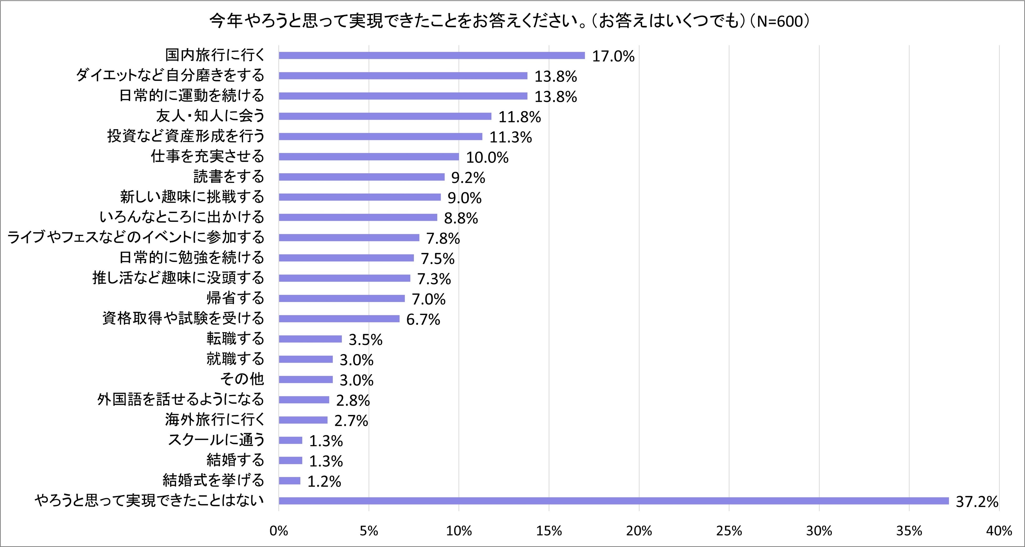 ・6割以上が今年やろうと思ったことを実現でき、若い世代こそ目標達成に積極的な傾向