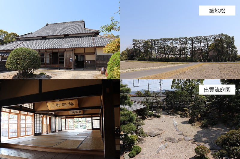 明治時代、島根県内でも指折りの地主豪農が現在の場所に建てた旧屋敷です。典型的な出雲流枯山水の庭や、屋敷を囲む築地松などともに、出雲平野の農村文化の歴史を継承する貴重な建造物として知られています。