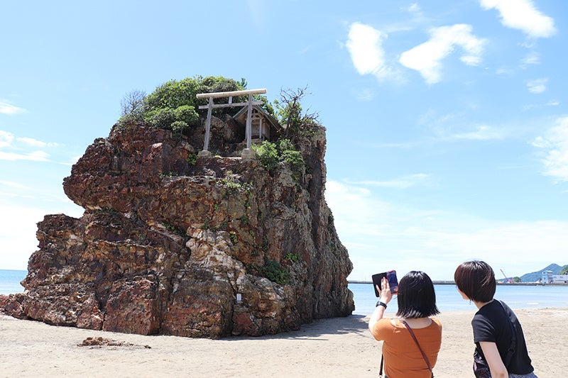 出雲神話で語られる二つの重要な物語、「国譲り神話」と「国引き神話」の舞台であるとともに、神在月に八百万の神々をお迎えする場所です。日本遺産に指定されている沈みゆく夕日はまさに絶景。神話の世界に思いをはせながら風景を楽しむことができるスポットです。(令和4年4月28日現在、階段式護岸設置工事などが行われており、一部立ち入り禁止区域があります。)