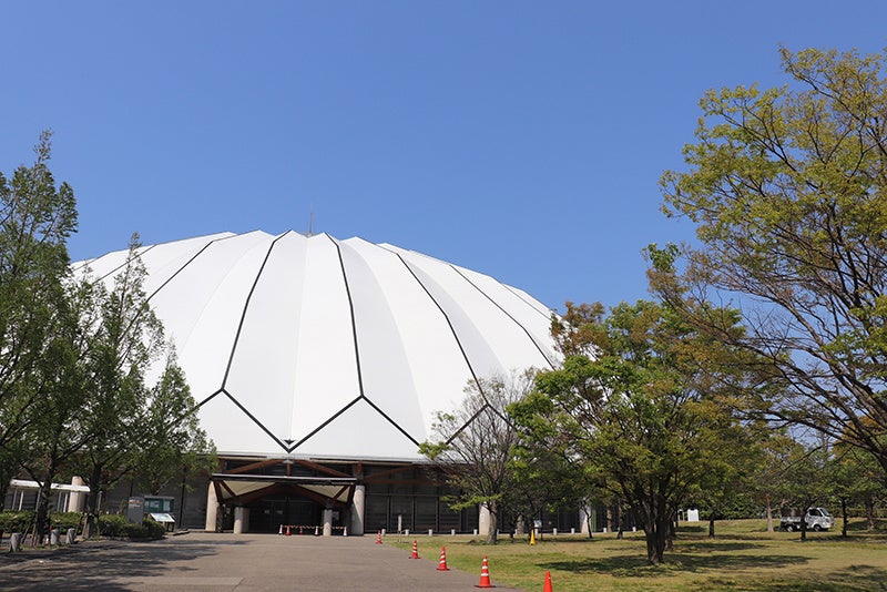 日本最大の木造建築として平成4年4月にオープン。以後、有名アーティストのコンサートや出雲駅伝のゴールなどの大規模イベントから、地域の運動会や行事ごとまで、全天候型の特徴をいかんなく発揮し、幅広く活用されています。その建築美はもとより、青い空に巨大な白いドームがよく映えます。