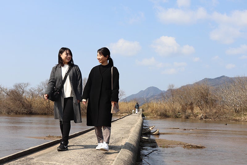 斐伊川にかかる全長300mを超える沈下橋で、川の水量が増えると沈んで見えなくなってしまいます。日頃は地元の人たちの散歩やジョギングなどにも利用されています。広い川のど真ん中から眺める、雄大な斐伊川や北山連峰はしばし時を忘れさせてくれます。まさに地元の人たちしか知らない、隠れた“映え”スポットです。