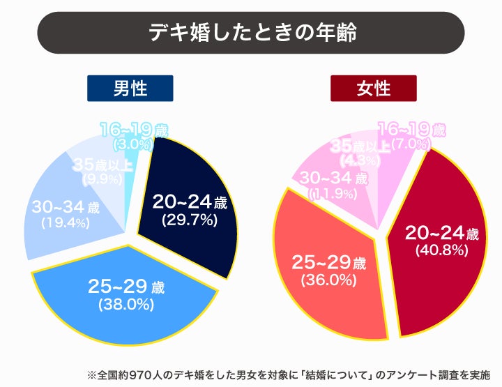 デキ婚は男女ともに20代が約7割を占める
